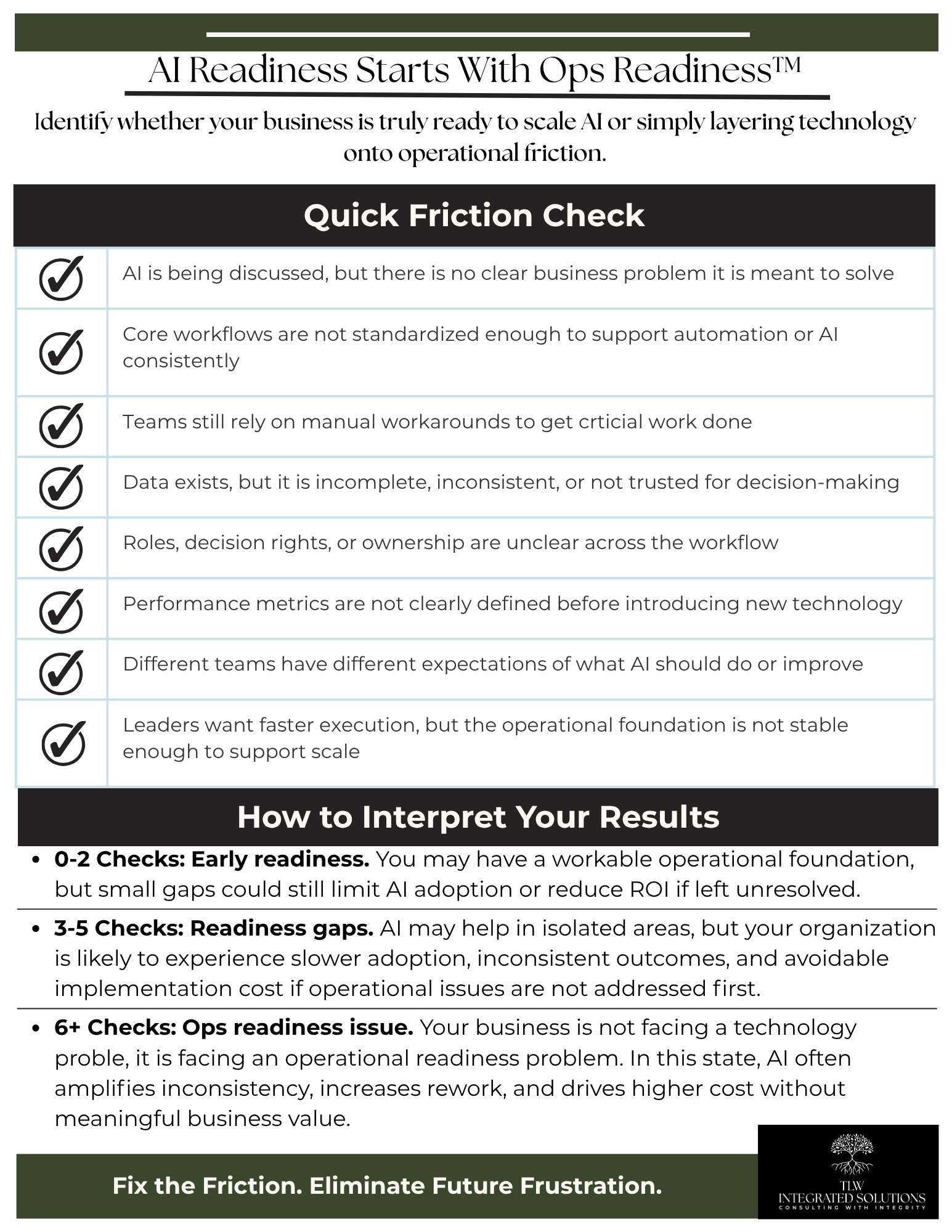 Practical downloads from Tricia Warren, The Friction Fixer™, designed for leaders who want clearer decisions, stronger ownership, and less drag in day-to-day execution.